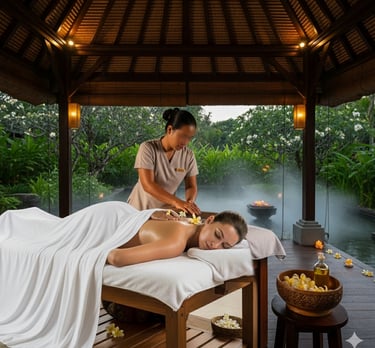 El masaje balinés es una técnica de masaje tradicional de Indonesia que combina acupresión, reflexología, estiramientos y masajes largos y fluidos. Utiliza aceites esenciales para nutrir la piel y promover una relajación profunda. El objetivo principal es aliviar la tensión muscular, mejorar la circulación sanguínea y calmar tanto el cuerpo como la mente.